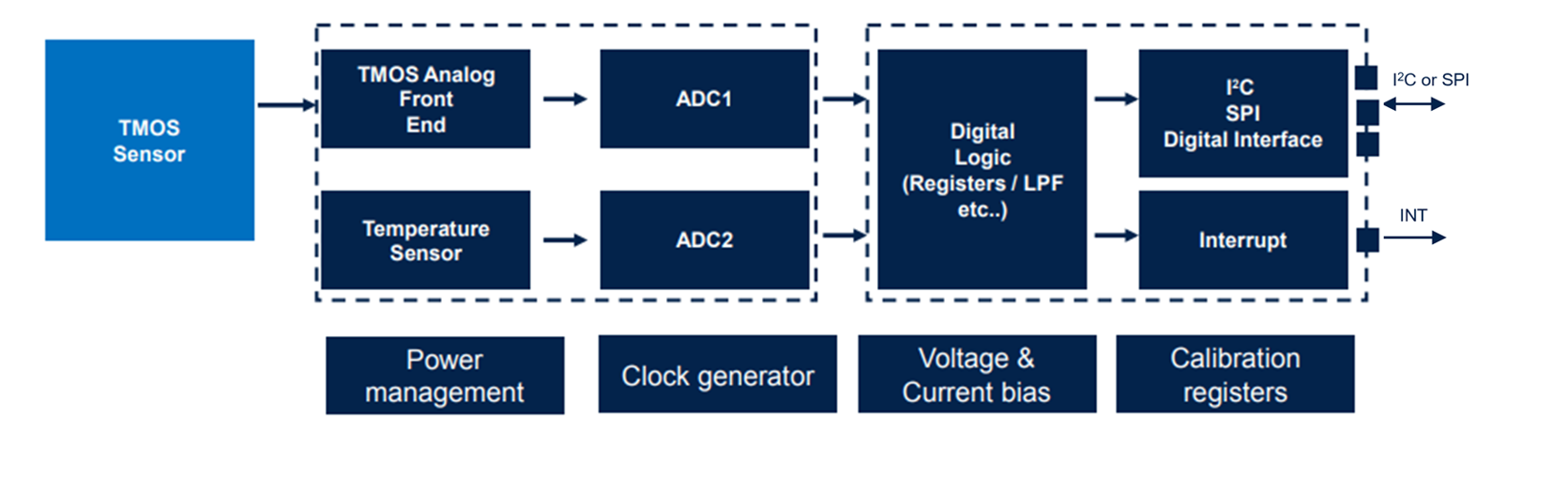 그림 2. ASIC이 아날로그 신호를 디지털 신호로 변환하는 방법을 보여주는 ST마이크로의 IR 센서 블록 다이어그램(출처: STMicroelectronics)